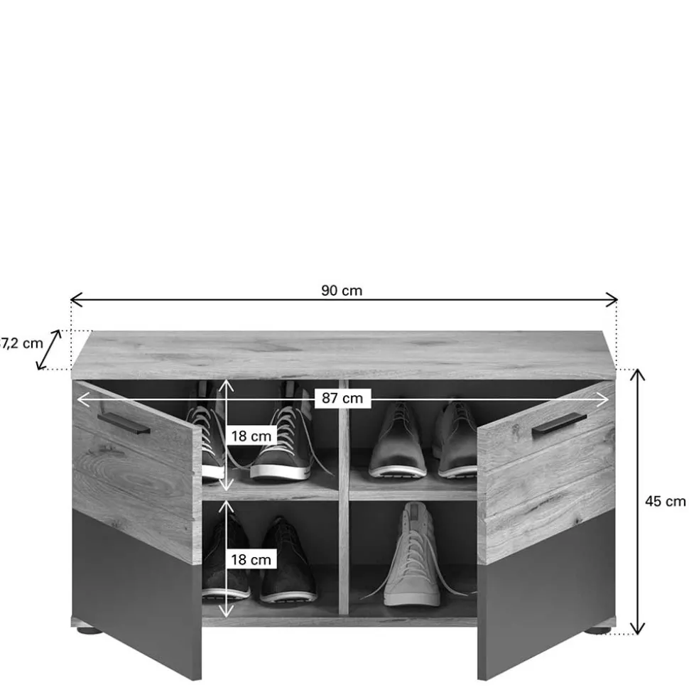 - Klasse Schuhbank in Wildeichefarben und Grau