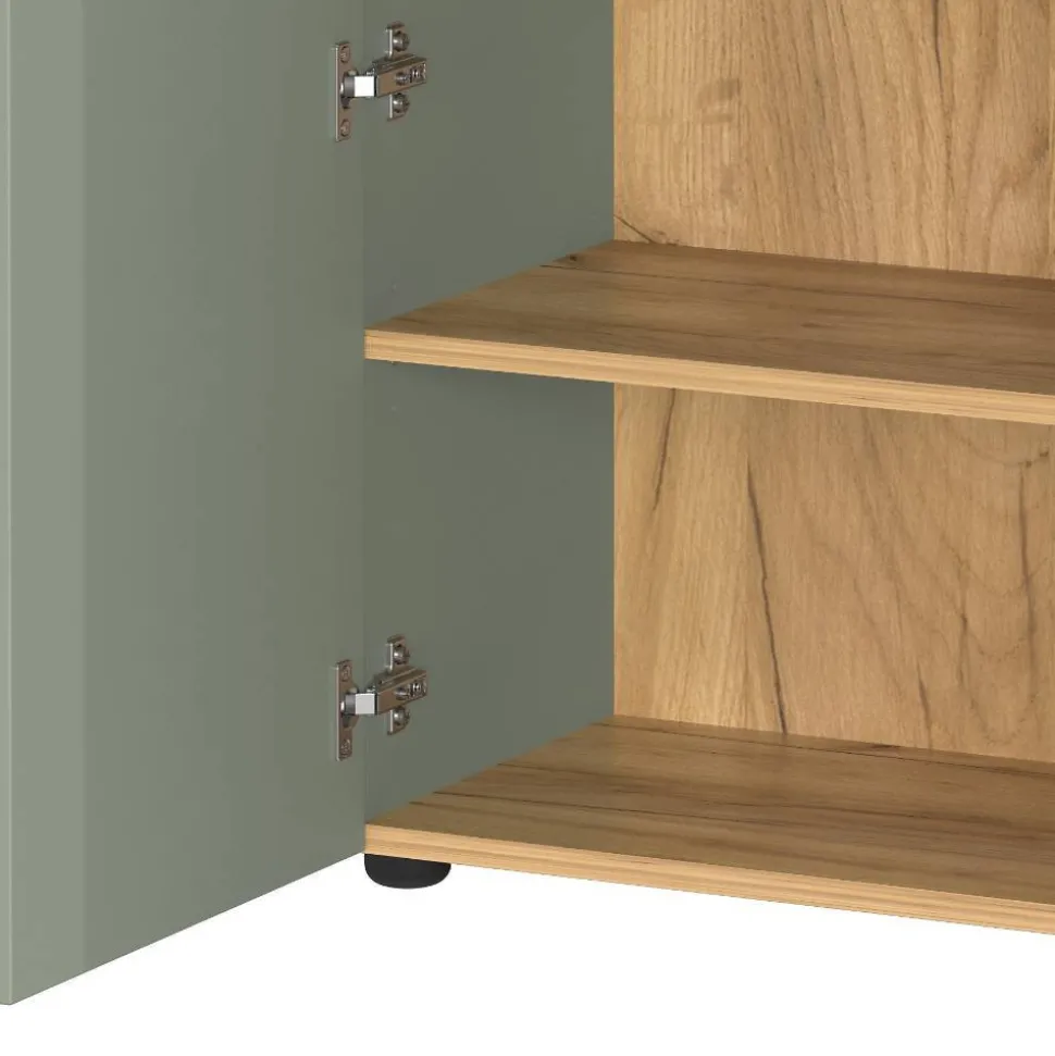Die Serie „Bien“ kombiniert Graugrün mit warmen Holzelementen in Eicheoptik und schafft damit eine beruhigende Atmosphäre in Ihrem Eingangsbereich. Diese harmonische Möbelkombination vereint modernes Design mit praktischer Funktionalität. Neben weiteren Möbelstücken der Serie „Bien“ finden Sie dieses Programm auch in anderen Farbvariationen hier bei Wohnen.de.