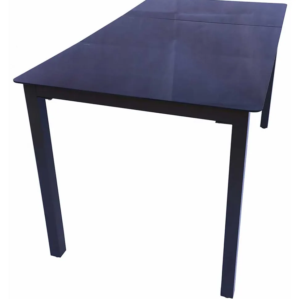 Das standfeste, schwarze Vierfußgestell garantiert zusätzlichen Halt und sorgt für eine gleichmäßige Verteilung des Gewichts. Damit bleibt der Tisch stets stabil und sicher, auch bei windigem Wetter oder bei gelegentlichen Stößen.