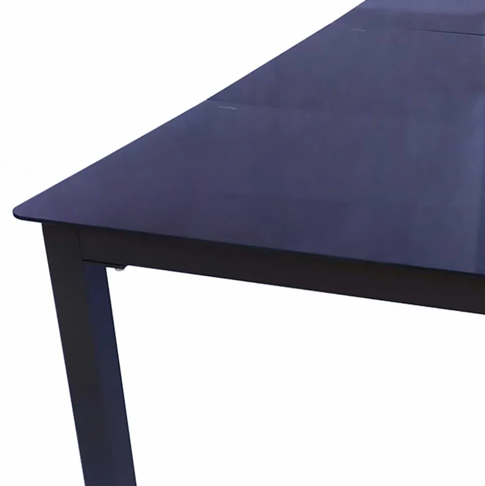 Die Tischplatte besteht aus Sicherheitsglas, das für zusätzliche Sicherheit sorgt. Dieses Glas ist speziell gehärtet und widerstandsfähiger als normales Glas – sollte es doch einmal zu einem Bruch kommen, zerfällt es in kleine, ungefährliche Stücke. Das Sicherheitsglas verleiht dem Tisch eine edle, glänzende Oberfläche, die besonders pflegeleicht ist und sich einfach reinigen lässt. Darüber hinaus bietet die Glasplatte eine moderne und elegante Optik, die jeden Außenbereich aufwertet.