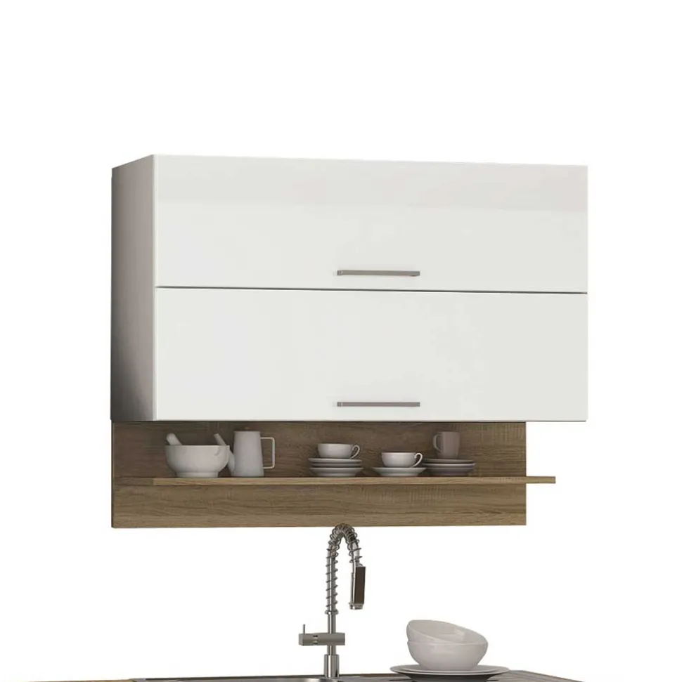 - Korpus weiß melaminbeschichtet, Wandboards, Arbeits- und Ablagefläche in Holzoptik Sonoma Eiche