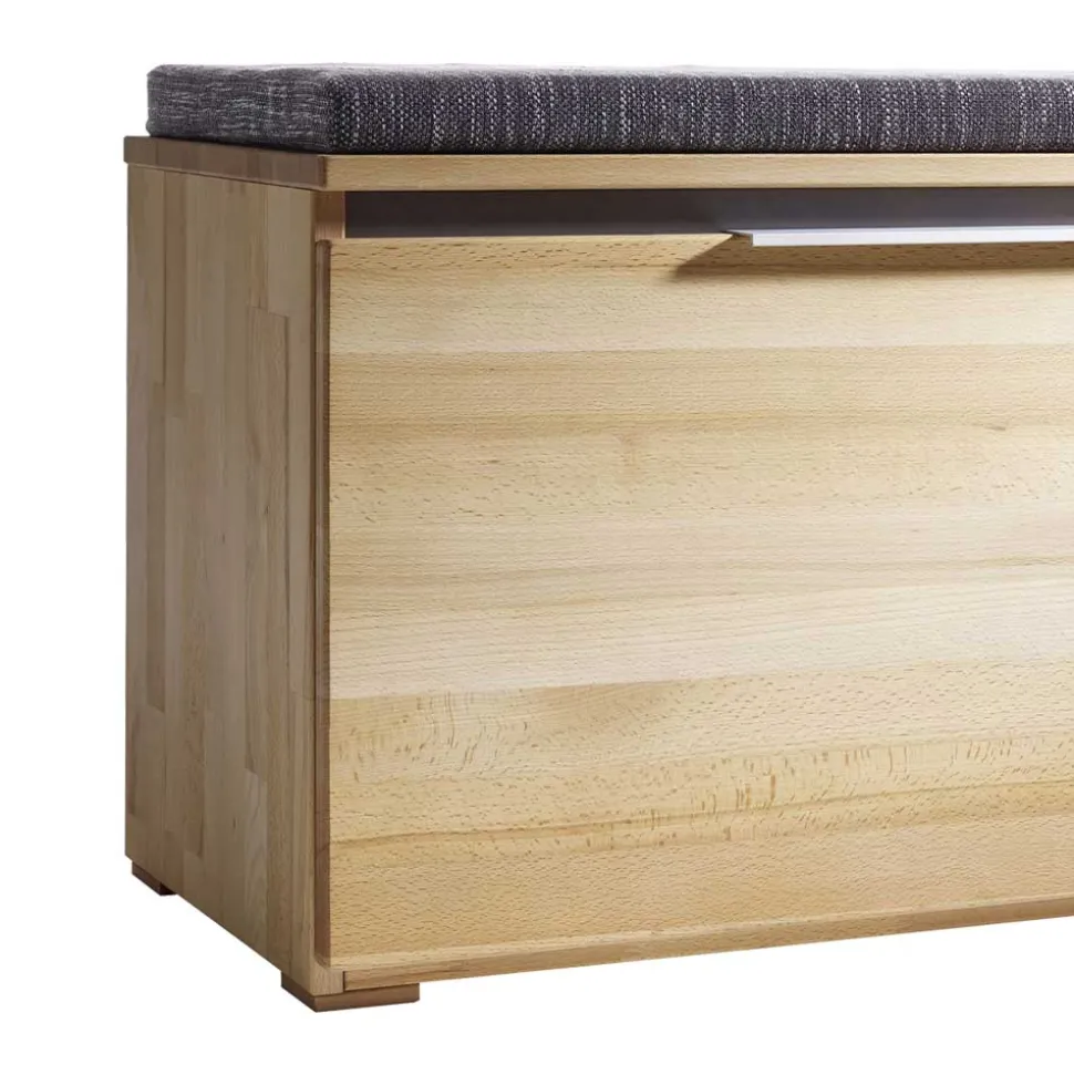 Hergestellt aus massivem Kernbucheholz, besticht die Garderobenbank durch ihre Robustheit und Langlebigkeit. Die natürliche geölte Holzoberfläche betont die individuelle Maserung des Kernbuchenholzes, wodurch jedes Stück zu einem Unikat wird. Die Ölung schützt das Holz nicht nur, sondern unterstreicht auch seine natürliche Schönheit und Wärme.