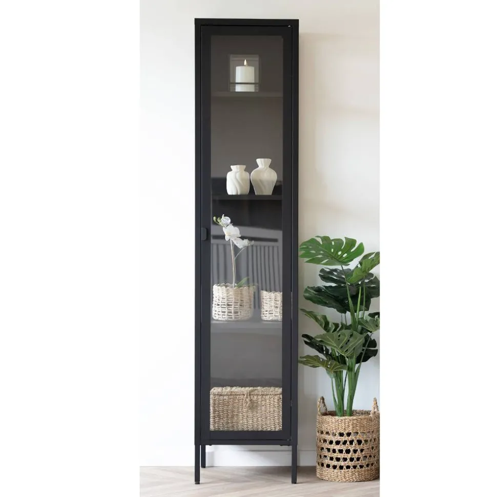 Die Stahl-Vitrine „Rodicca“ bringt mit ihrem geradlinig-minimalistischen Design und schwarzem Finish den angesagten Industrial Charme direkt in Ihre vier Wände. Dank ihrer schlanken Silhouette lässt sie sich hervorragend in Wohn- und Essbereiche oder auch in stilvolle Arbeitszimmer integrieren, wo sie moderne Akzente setzt und Ihre Lieblingsstücke eindrucksvoll in Szene setzt.