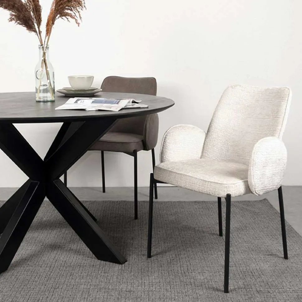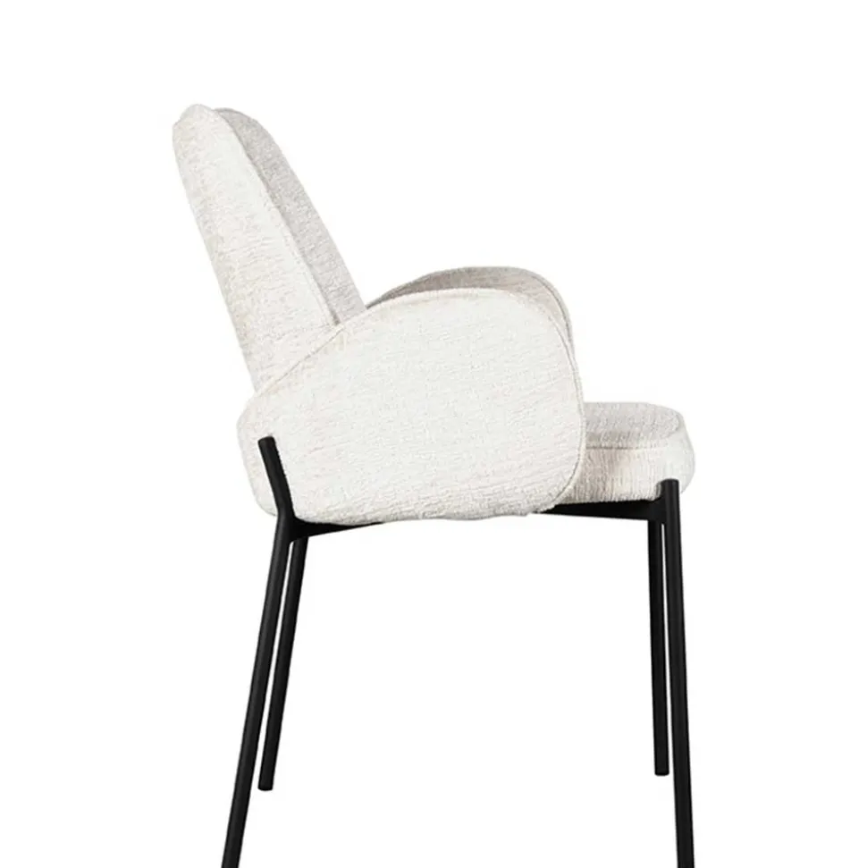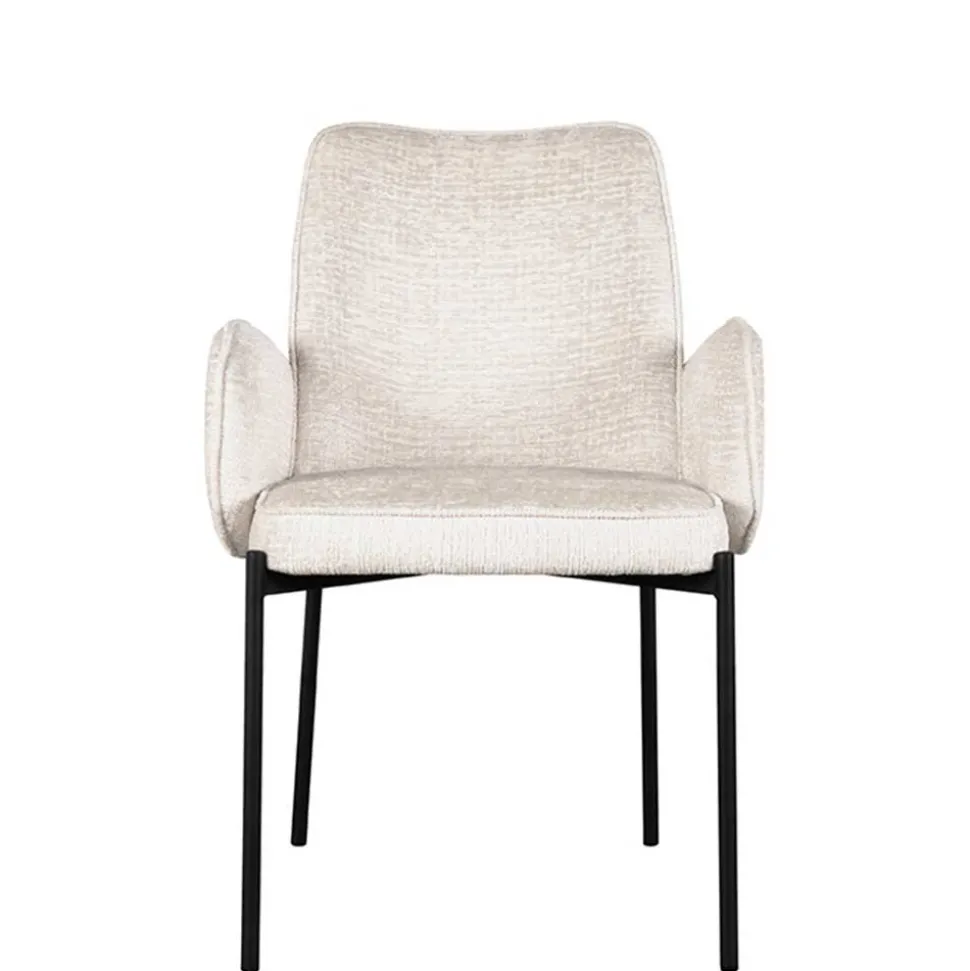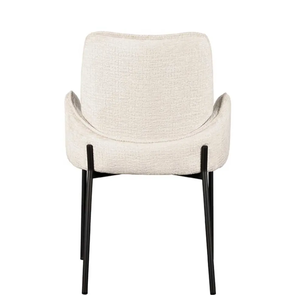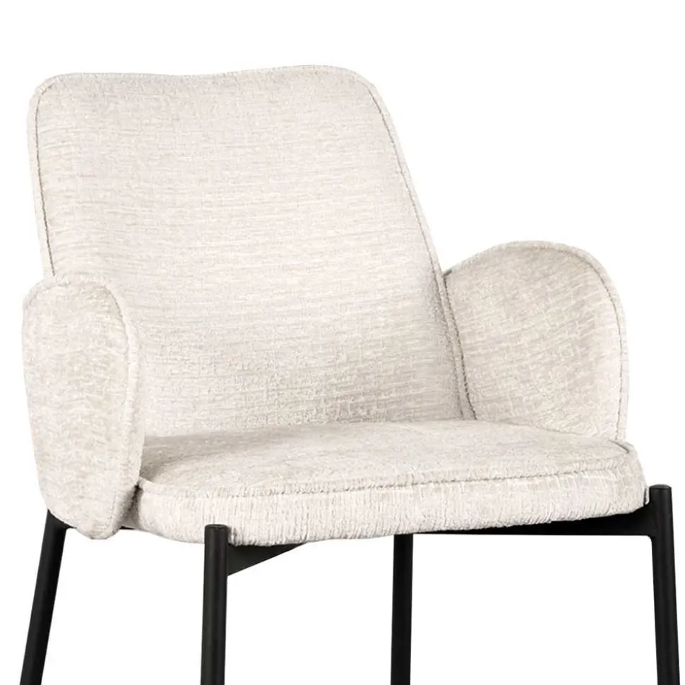Mit dem Stuhl „Propanja“ holen Sie sich ein echtes Highlight in Ihren Essbereich. Die klaren Linien, das elegante Zusammenspiel aus cremeweißem Struktursamt und schwarzem Metallgestell sowie die feine, leicht nach hinten geneigte Rückenlehne machen ihn zu einem Designobjekt, das Ihre Einrichtung auf ein neues Niveau hebt. Dank der hohen, geraden Armlehnen und der harmonischen Formgebung genießen Sie nicht nur stilvolle Optik, sondern auch ein Sitzgefühl, das pure Entspannung verspricht.