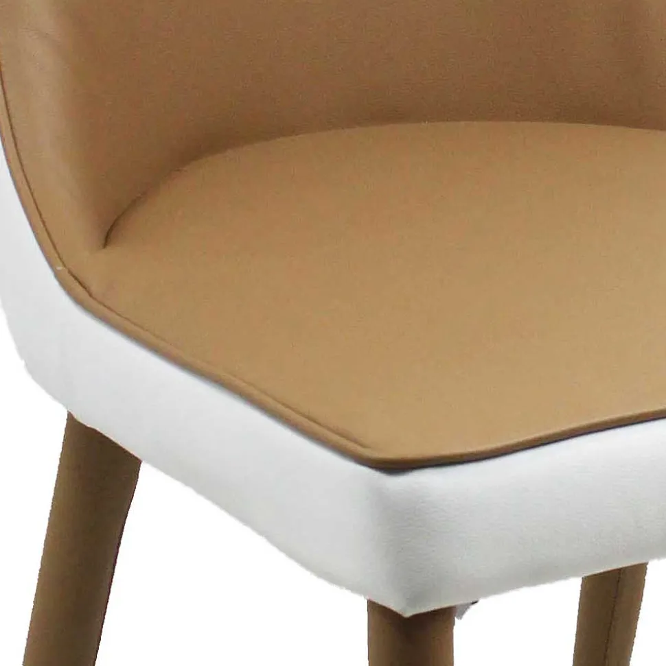 Kunstleder aus 100 % Polyurethan kleidet die Sitzflächen der Stühle in elegantem Hellbraun und setzt mit einer rückseitigen weißen Gestaltung stilvolle Akzente. Polyurethan punktet mit hervorragender Strapazierfähigkeit, Pflegeleichtigkeit und einer angenehm weichen Haptik – perfekt geeignet für den Alltag und den besonderen Anlass gleichermaßen.