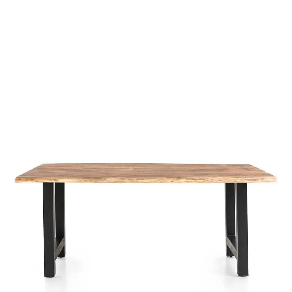 Eine massive Tischplatte mit etwa 3,5 cm Stärke bildet das Zentrum der Sitzgruppe. Aus einem Stück Akazienholz geschnitten, wie gewachsen – das bedeutet: Die organische Baumkante bleibt erhalten und erzählt die Geschichte des Holzes. Keine zwei Platten sind gleich, jedes Stück ist ein Unikat mit natürlicher Formgebung und charaktervoller Struktur. Diese gewachsene Kante bringt Natürlichkeit und Leben in den Raum und hebt sich wohltuend vom Gewöhnlichen ab.