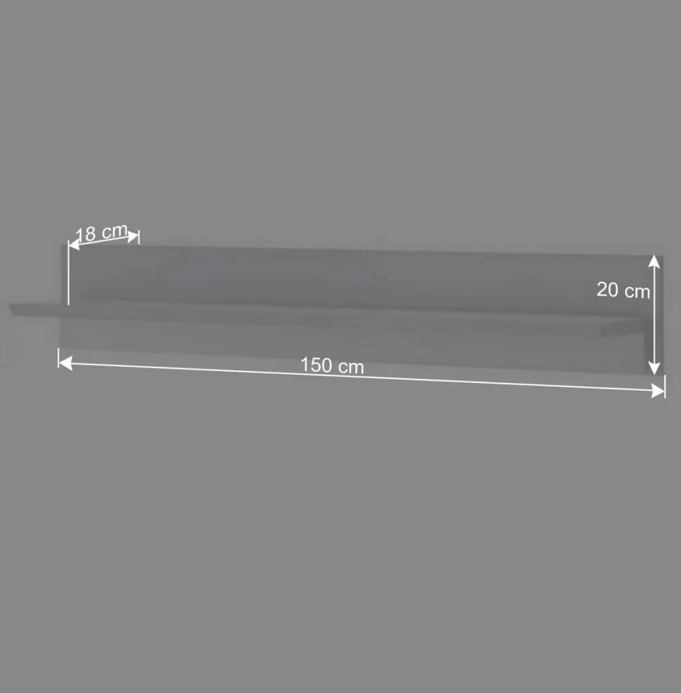 - Das Wandboard (150x20x18 cm): Eine schwebende Plattform für Ihre kreative Dekoration. Das Wandboard bietet einen stabilen Ablageboden, auf dem Bilderrahmen, Pflanzen oder Bücher elegant präsentiert werden können. Es rundet die Wohnwand stilvoll ab und schafft eine moderne, luftige Optik.