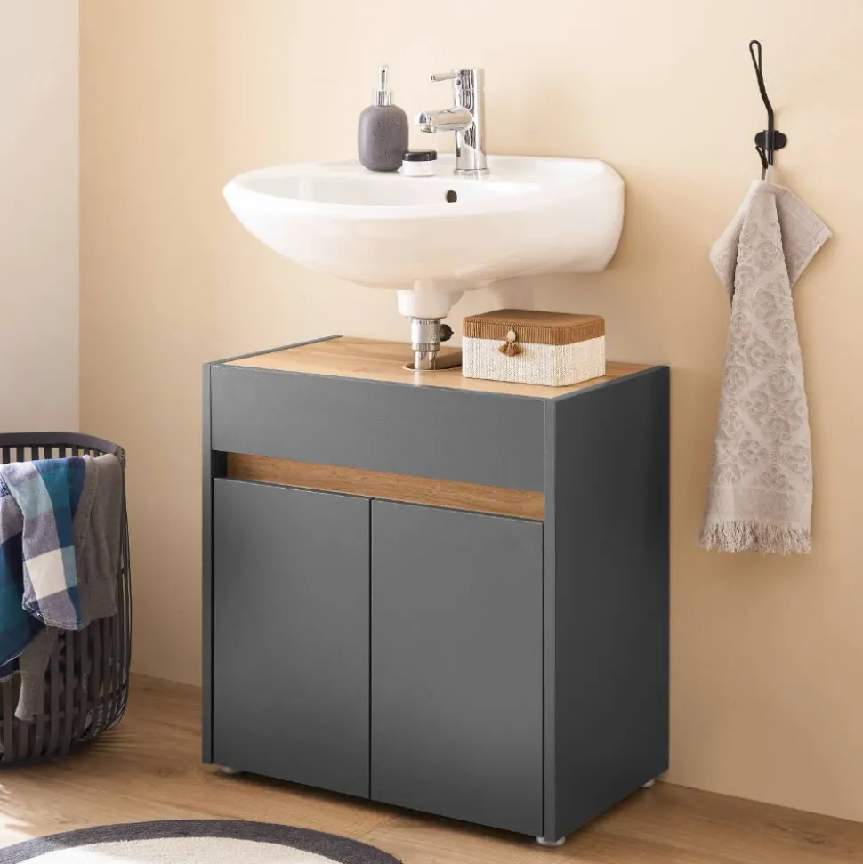- Praktischer Waschbeckenunterschrank in Anthrazit und Wildeichefarben