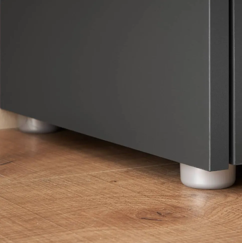 Die melaminbeschichtete Spanplatte bietet widerstandsfähige Oberflächen, die sich leicht reinigen lassen und auch bei täglicher Nutzung ihre hochwertige Optik behalten. Die grifflosen Fronten unterstreichen das minimalistische Design und sind besonders hygienisch.