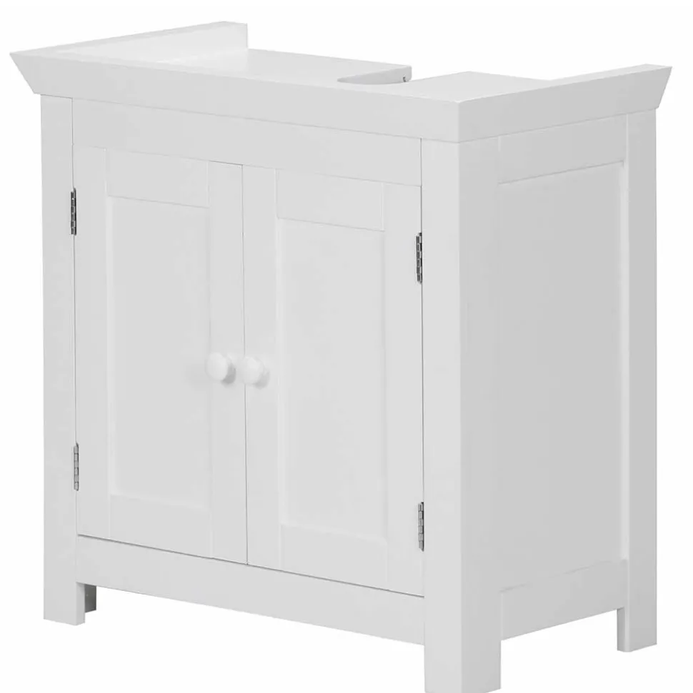 Mit wertigen Metallbeschlägen und praktischen Knopfgriffen aus Kunststoff punktet der Waschbeckenunterschrank nicht nur optisch, sondern auch funktional. Die ansprechenden Details runden das Gesamtbild ab und verleihen dem Möbelstück einen hochwertigen Eindruck. Bitte beachten Sie, dass die Lieferung ohne Abfluss-Zubehör erfolgt.