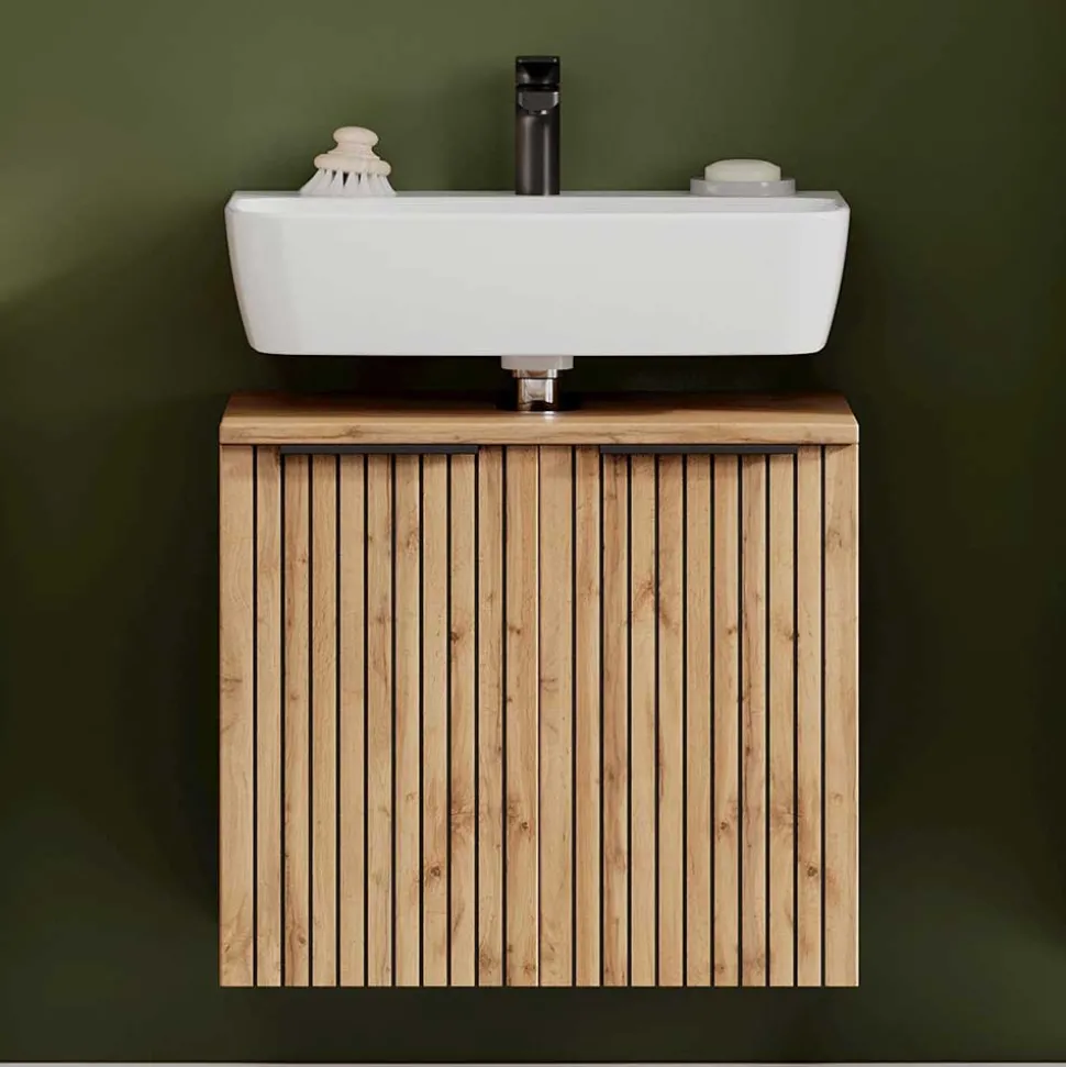 - Prima Waschbeckenunterschrank in Wildeichefarben und Schwarz