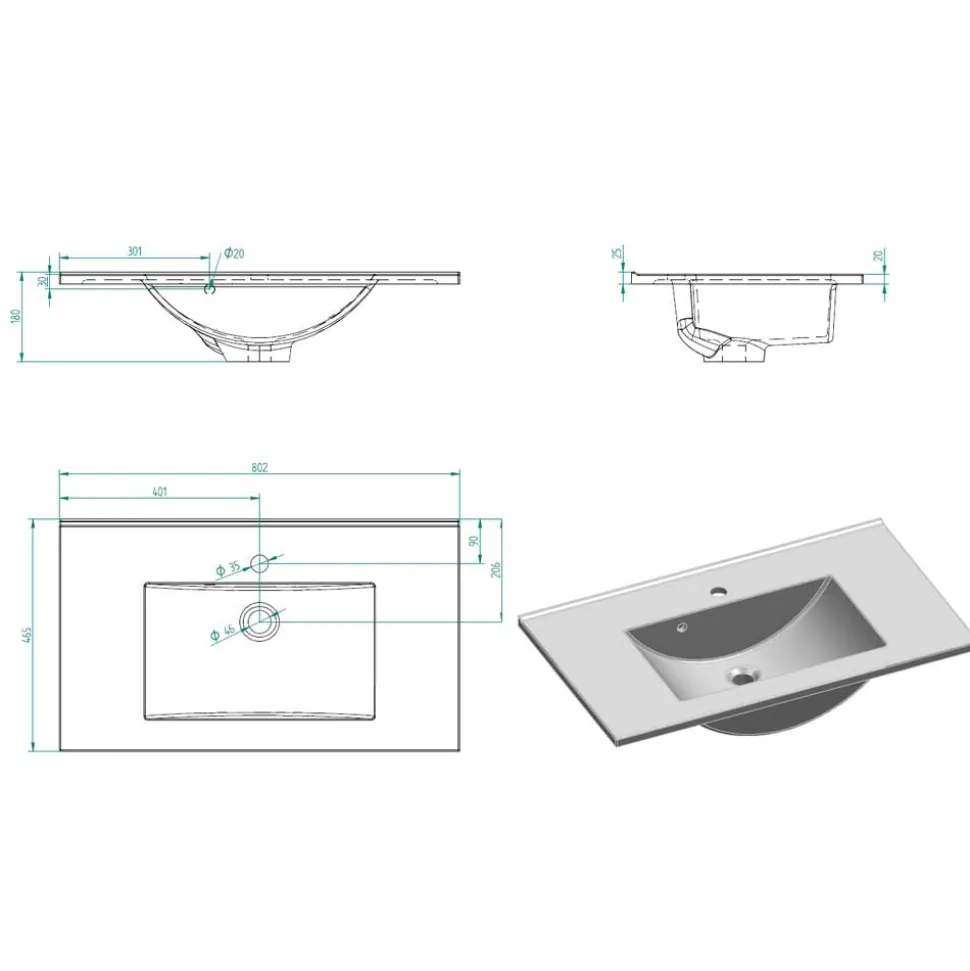 Im Lieferumfang enthalten ist ein pflegeleichtes, weißes Mineralgussbecken, das nicht nur durch seine moderne Formgebung überzeugt, sondern auch mit einer porenfreien, hygienischen Oberfläche punktet. Die Innenmaße von 46 x 13 x 27 cm bieten ausreichend Tiefe für den täglichen Komfort. Für eine unkomplizierte Montage sind die Armaturenlöcher bereits vorgebohrt, sodass Sie die Armatur Ihrer Wahl problemlos installieren können. Bitte beachten Sie, dass Armatur und Abflussrohr-Set nicht im Lieferumfang enthalten sind – das bietet Ihnen maximale Flexibilität bei der Gestaltung. Der Waschtisch wird zerlegt geliefert und lässt sich dank der beigelegten, bebilderten Aufbauanleitung schnell und unkompliziert selbst montieren.