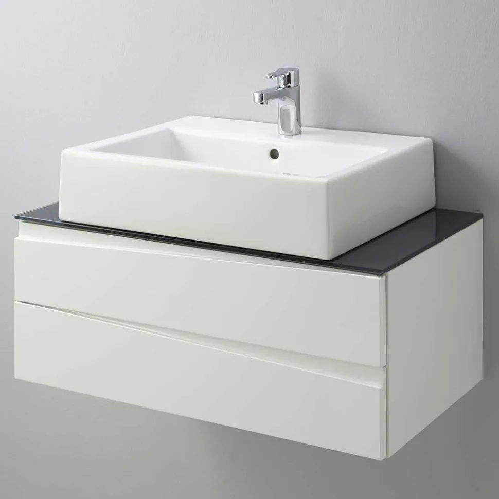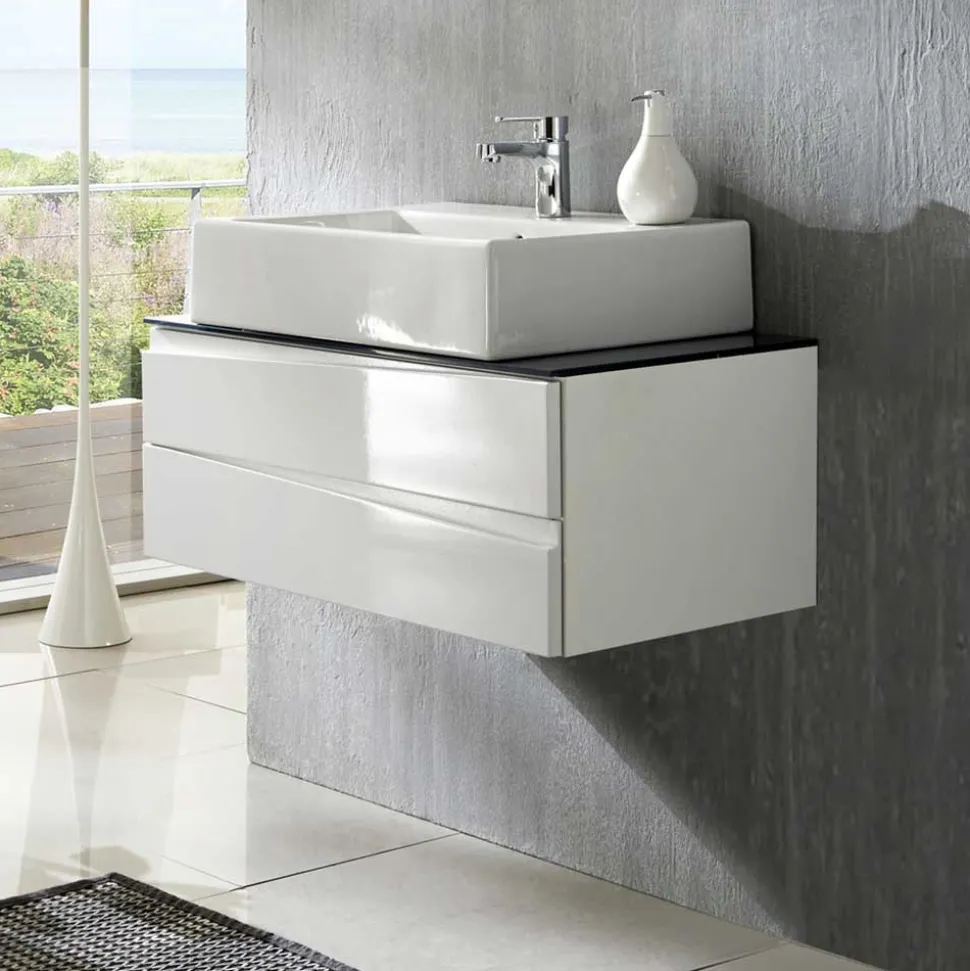 Die Waschtisch-Konsole „Impulse“ ist aus hochwertigen Materialien gefertigt, die eine lange Lebensdauer garantieren. Der Korpus besteht aus robuster Spanplatte, während die Front aus MDF gefertigt ist. Die 8 mm starke Front ist hochglänzend lackiert und verleiht der Konsole eine edle Note. Die pflegeleichte Melaminharzbeschichtung des Korpus und die Sicherheitsglas-Auflage in Dunkelgrau (6 mm Stärke) auf der Deckplatte unterstreichen die Qualität dieses Möbelstücks.