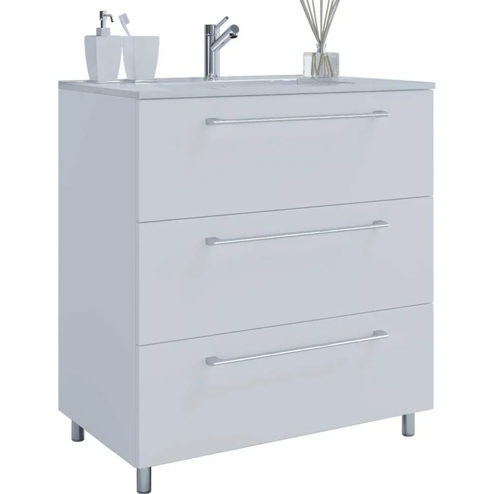 - Weißes Keramik Waschbecken mit seitlichen Ablagen