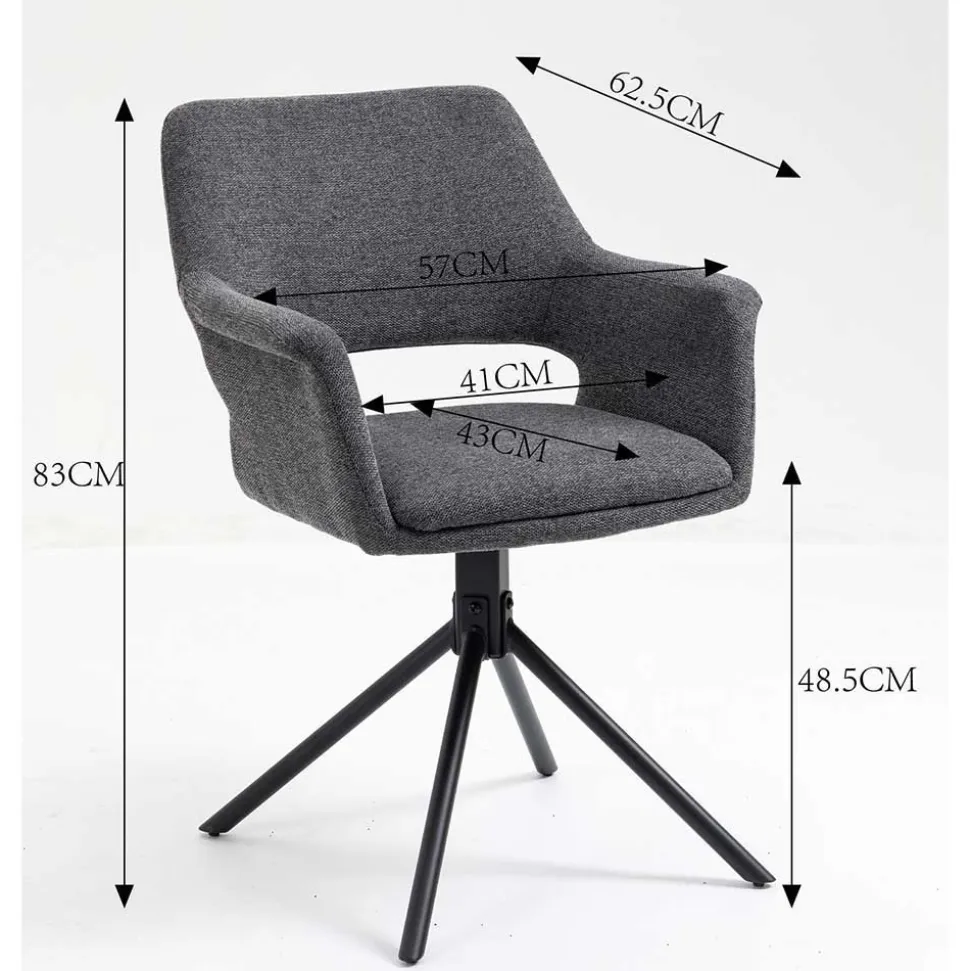 Für maximale Bewegungsfreiheit sorgt das schwarze, zierliche Stativgestell aus robustem Metall, das sich um 360° drehen lässt. So bleiben Sie flexibel am Tisch, ohne aufstehen zu müssen – perfekt für dynamische Gesprächsrunden oder lange Abende in geselliger Runde. Das filigrane Metallgestell unterstreicht dabei die moderne Linienführung des Sessels und sorgt gleichzeitig für Stabilität bis zu einer Belastung von 110 kg.