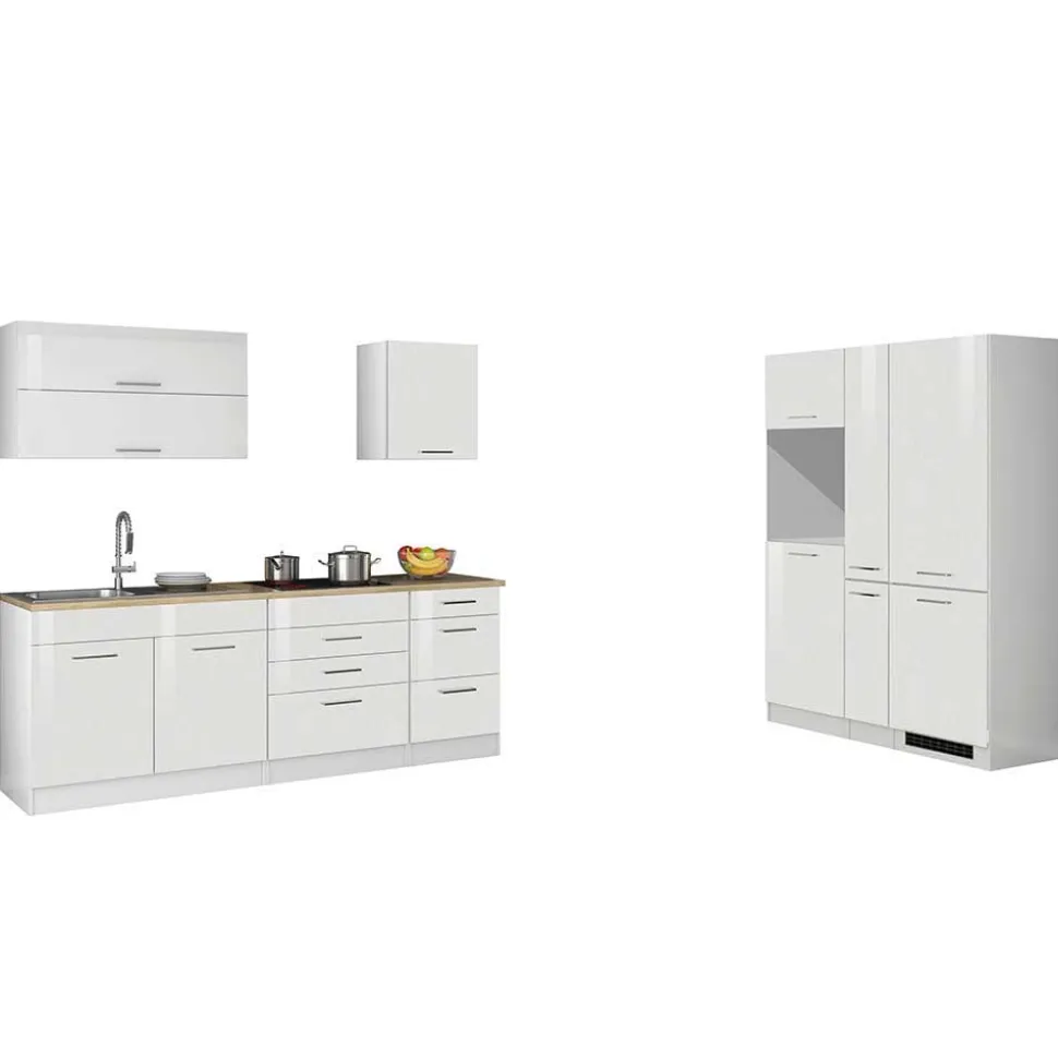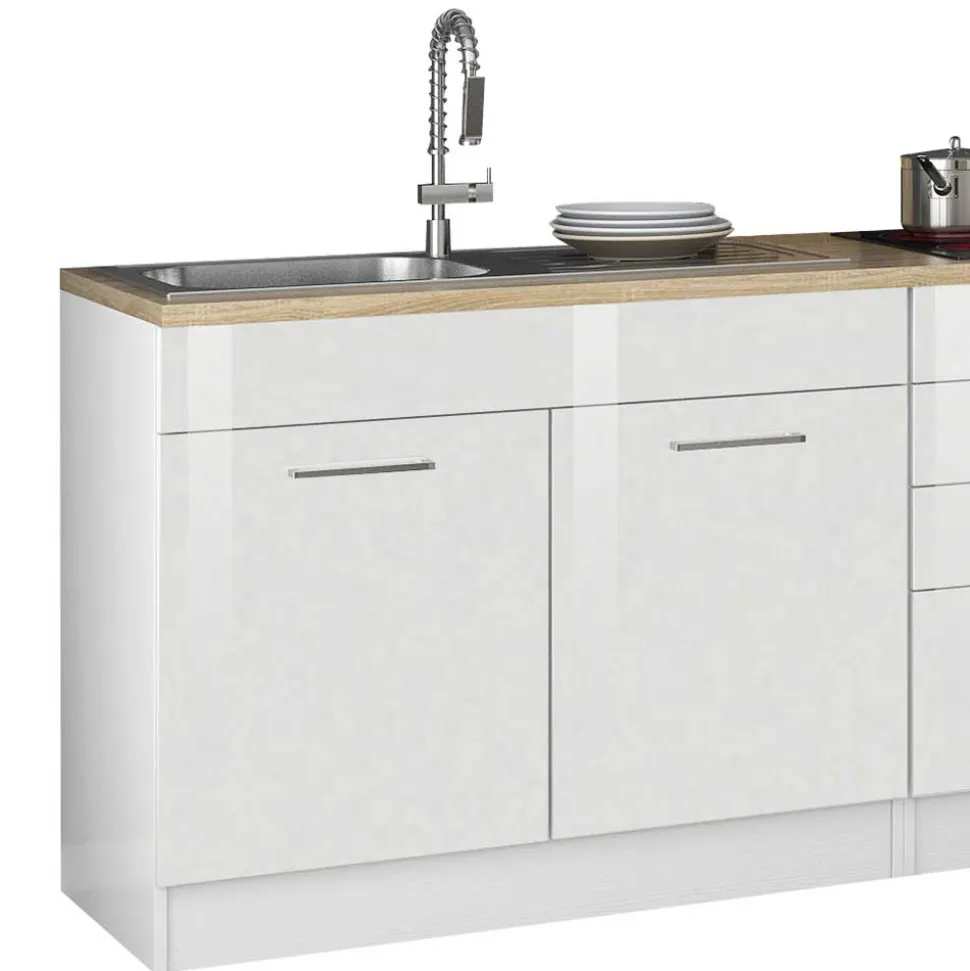 - Praktische Küchenzeile in Weiß Hochglanz und Sonoma Eiche