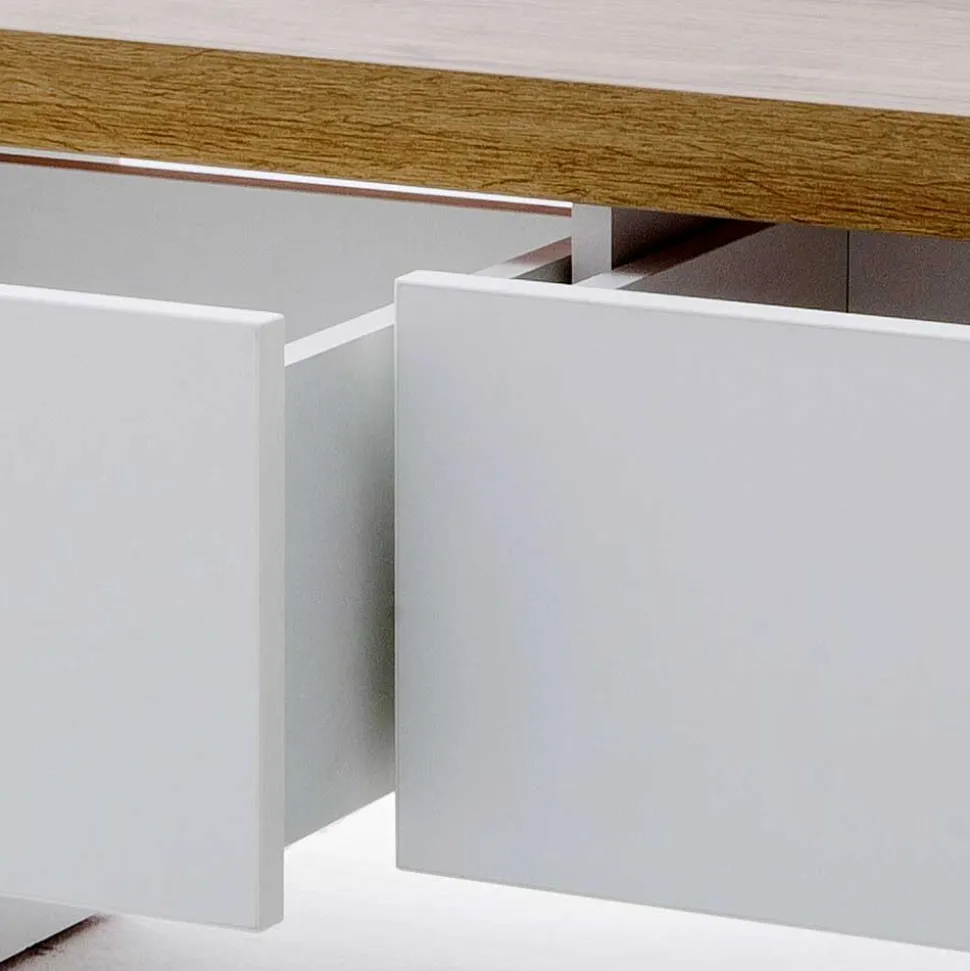 - Zwei grifflose Schubladen auf Metallauszug mit Softclose Funktion, Innenmaße (BxHxT): ca. 28x14x36 cm