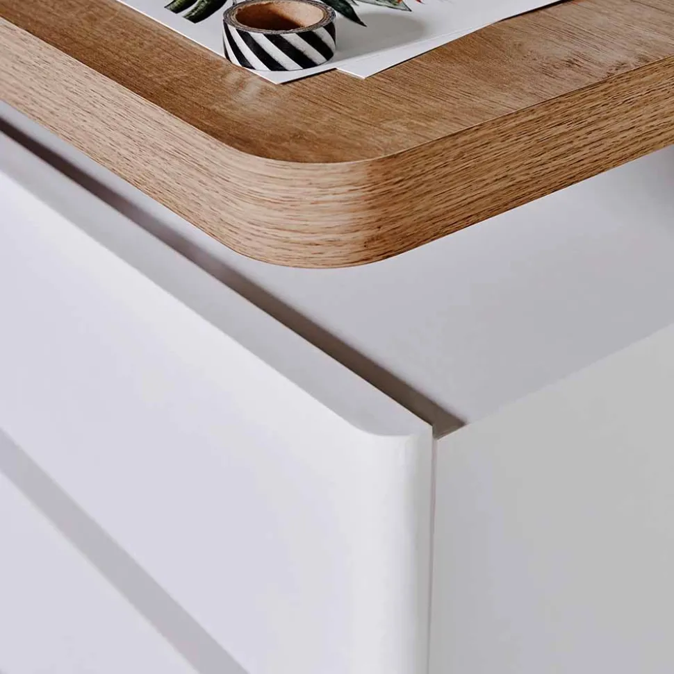 - Oberflächen in Weiß und im Holzdekor Eiche foliert