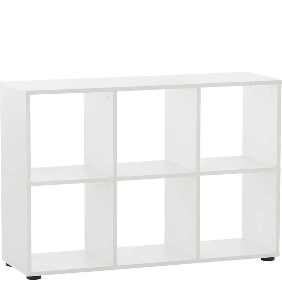 - Durch das Regal ergeben sich sechs Ablagen, Fächer von beiden Seiten offen