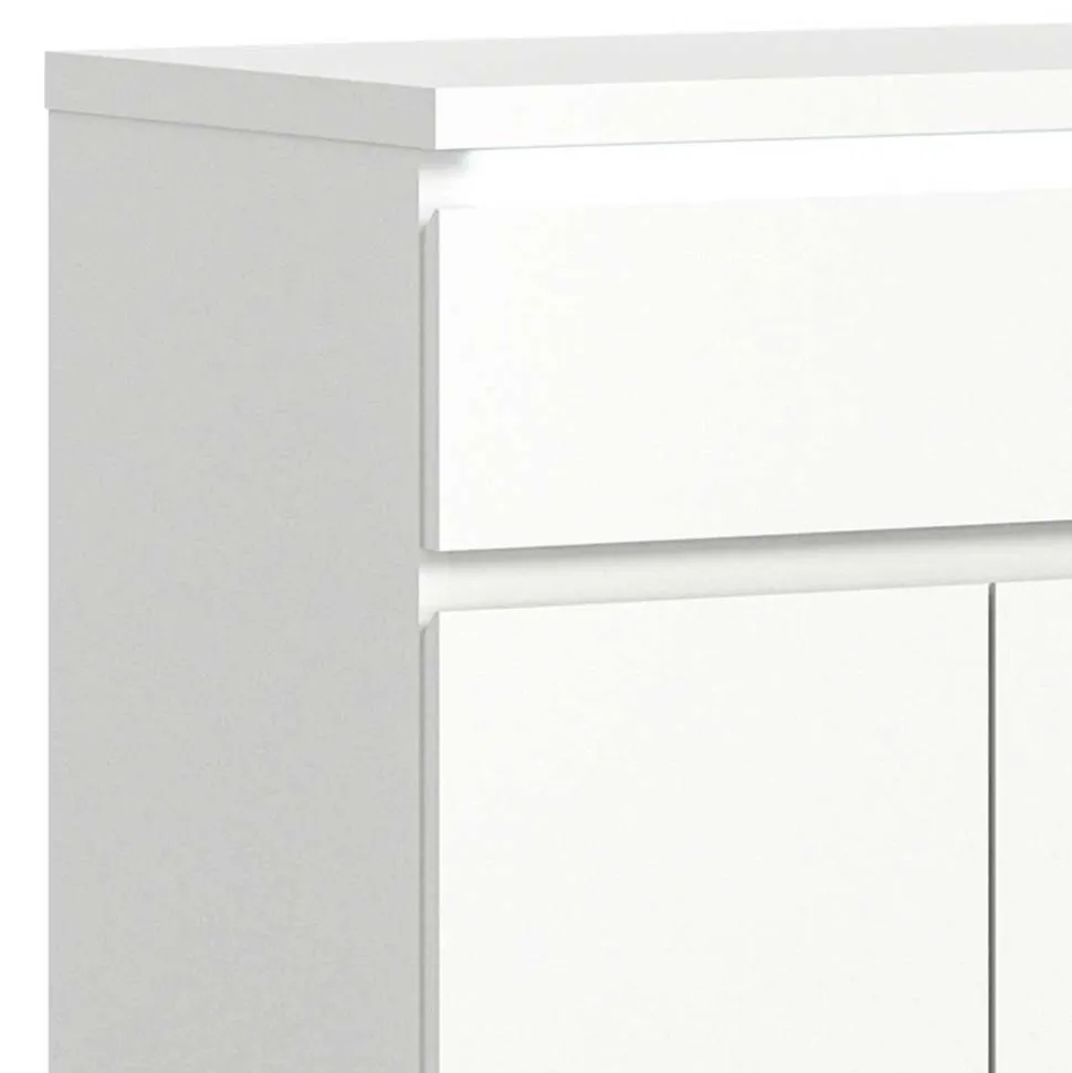 Die Oberflächen sind mit einer weißen Folie beschichtet, die nicht nur für eine ansprechende Optik sorgt, sondern auch die Pflege erheblich erleichtert. Flecken, Staub und Fingerabdrücke lassen sich im Handumdrehen entfernen, was den Schuhschrank „Dany“ ideal für einen viel genutzten Bereich wie den Eingang macht.