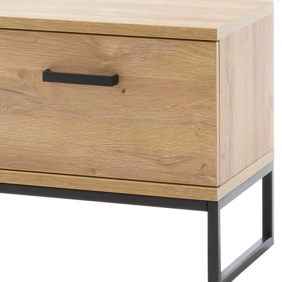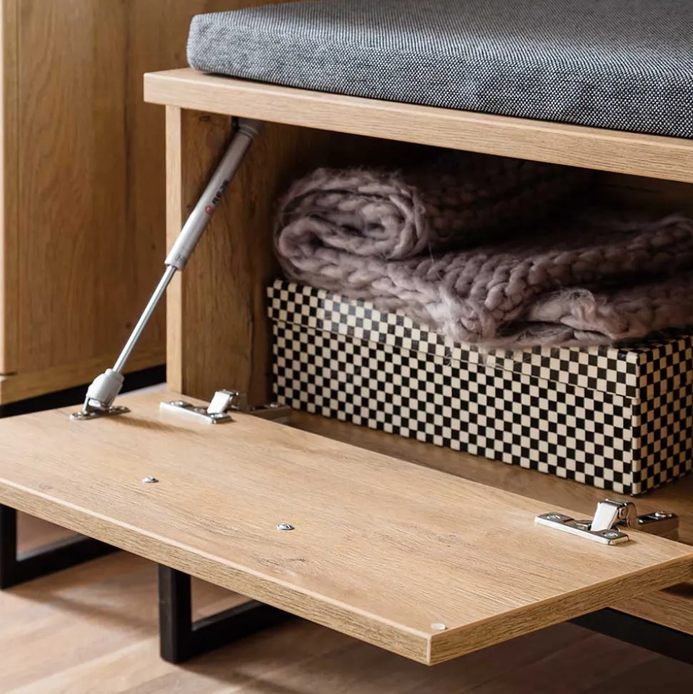 Gefertigt aus robuster Spanplatte und Metall, verspricht die Flurbank „Truvisas“ eine beeindruckende Langlebigkeit. Die Spanplatte in der Holzoptik Wildeiche, melaminbeschichtet, bietet nicht nur eine ansprechende Ästhetik, sondern auch praktische Vorteile: sie ist pflegeleicht, widerstandsfähig gegen Kratzer und leichte Stöße, und bewahrt ihre schöne Optik über Jahre hinweg.