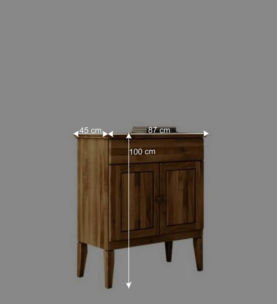Mit einer Breite von 87 cm, einer Höhe von 100 cm und einer Tiefe von 45 cm bietet „Masdamos“ ausreichend Stauraum, ohne dabei aufdringlich zu wirken. Ob im Schlafzimmer, im Wohnzimmer oder im Flur – sie fügt sich harmonisch in Ihr Raumkonzept ein.