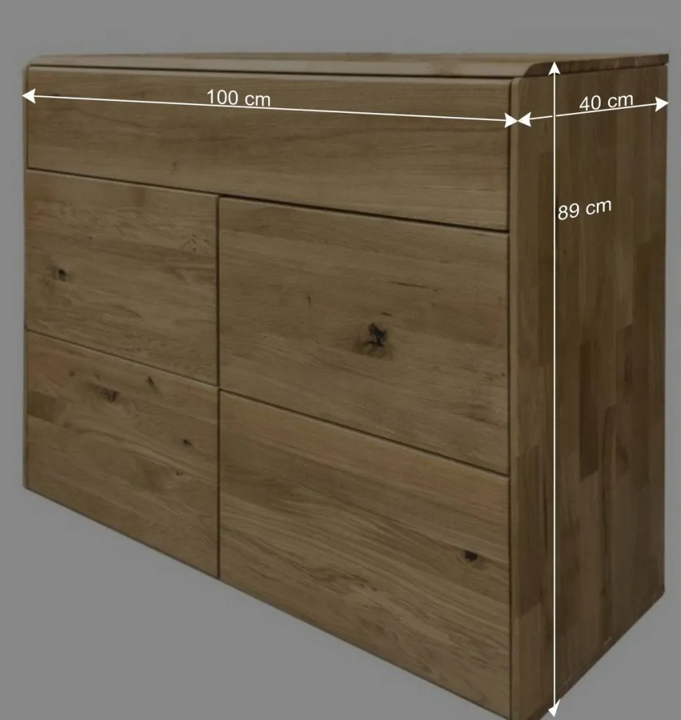 Auf 100 cm Breite, 89 cm Höhe und 40 cm Tiefe bietet „Feanor“ jede Menge Platz für alles, was Sie verstauen möchten. Oben befindet sich eine geräumige Schublade, ausgestattet mit einem hochwertigen Metall-Unterflurauszug. Dieser sorgt nicht nur für eine sanfte und leise Führung, sondern verleiht der Schublade zusätzliche Stabilität – perfekt für den täglichen Gebrauch.