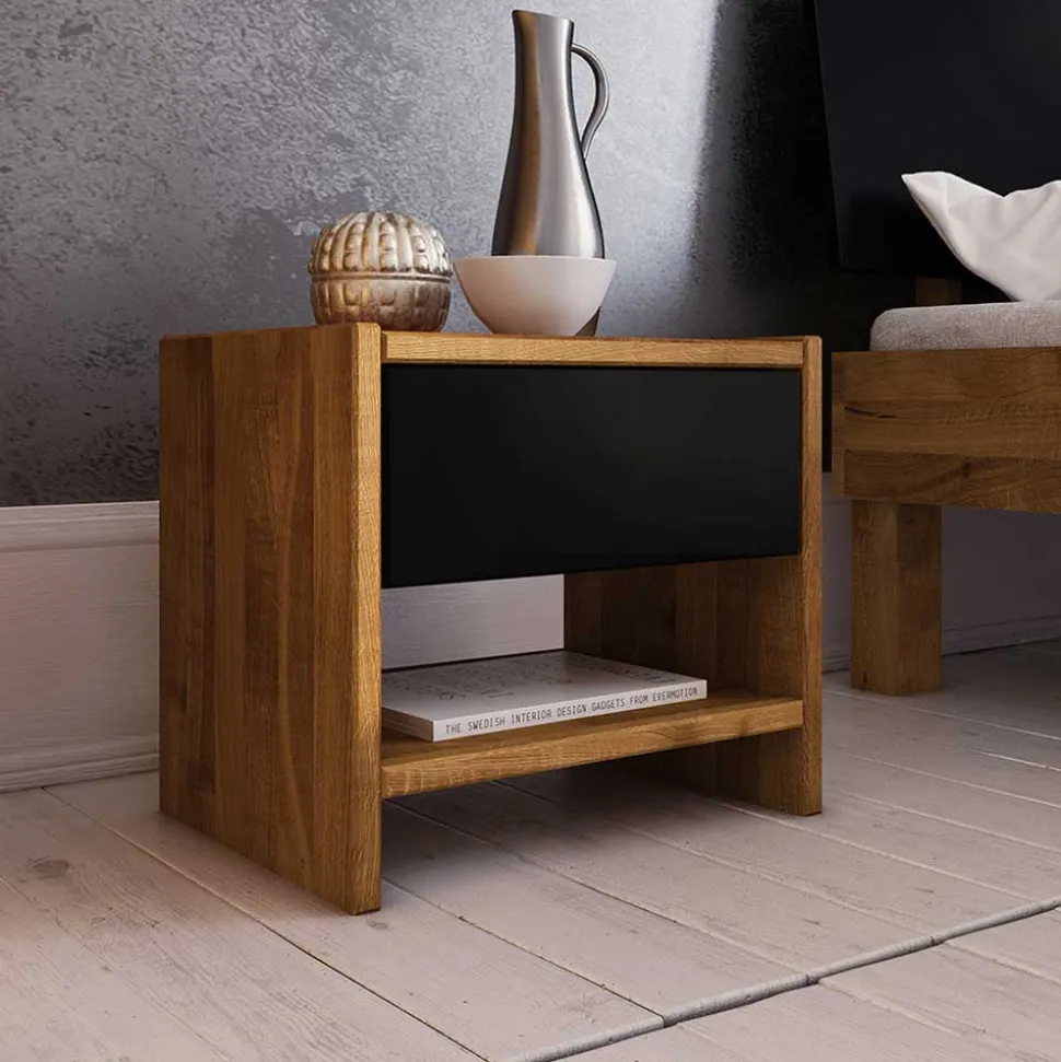 - Klasse Nachtkommode in Wildeichefarben und Schwarz