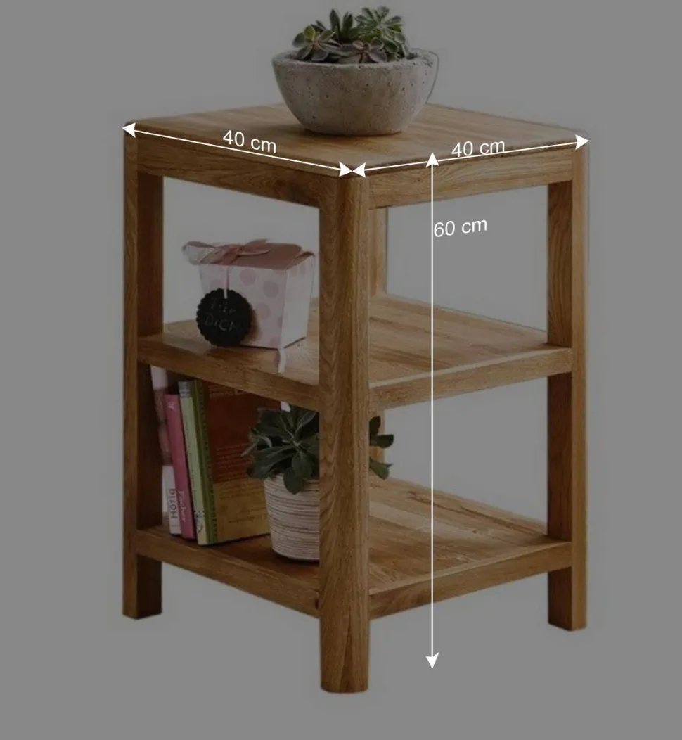 Ob im Wohnzimmer, Schlafzimmer, Flur oder Arbeitsbereich – „Uvinessa“ passt überall hin. Mit einer Breite von 40 cm, einer Höhe von 60 cm und einer Tiefe von 40 cm ist dieses Möbelstück kompakt genug, um auch in kleinere Räume zu passen, und gleichzeitig großzügig genug, um funktionalen Stauraum zu bieten. Zwei praktische Ablageflächen mit einer Fachhöhe von ca. 20 cm schaffen Platz für Bücher, Dekoration oder Alltagsgegenstände. Die solide Tischplatte mit einer Stärke von 1,5 cm und die massive Zarge von 3,8 cm sorgen für Stabilität, ohne dabei die ästhetische Leichtigkeit zu verlieren.