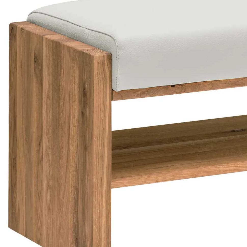 Das standfeste Wangengestell der Schuhbank „Mandrey“ besteht aus Wildeicheholz, das nicht nur eine hohe Stabilität gewährleistet, sondern auch einen natürlichen und zeitlosen Charme versprüht. Die maximale Belastbarkeit beträgt 100 kg, sodass Sie sich bedenkenlos auf die Bank setzen können.