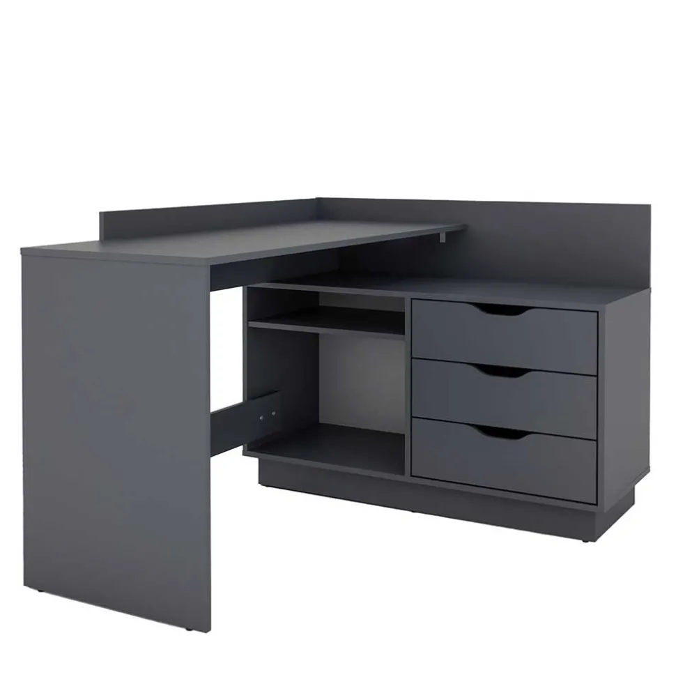 Schaffen Sie mit unserem schlicht-geradlinigen Winkelschreibtisch „Korfu“ in Anthrazit einen zeitgemäßen Arbeitsbereich, der sich nahtlos in Ihr Zuhause einfügt. Die durchdachte Winkelform ermöglicht eine platzsparende Aufstellung, während die großzügigen Ablagemöglichkeiten und offenen Fächer für eine übersichtliche Organisation sorgen.