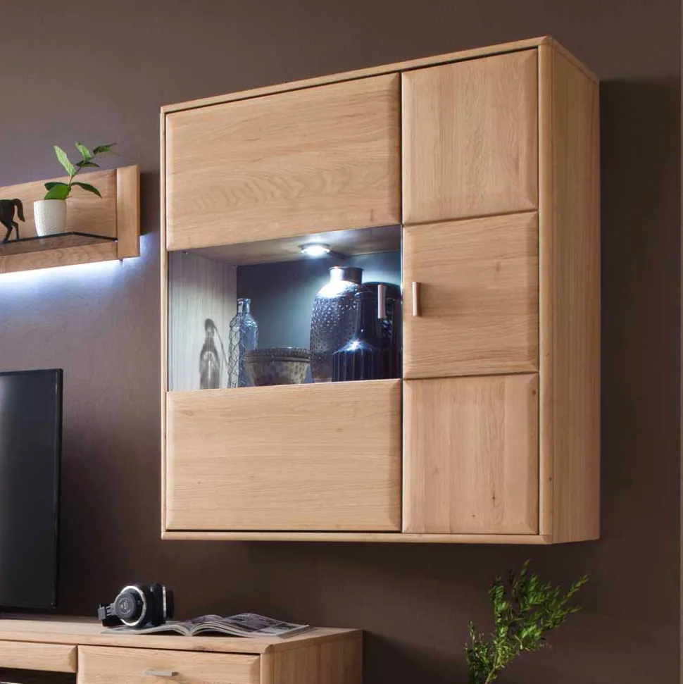 Wohnwand Hängevitrine in Eiche Bianco – Vernella