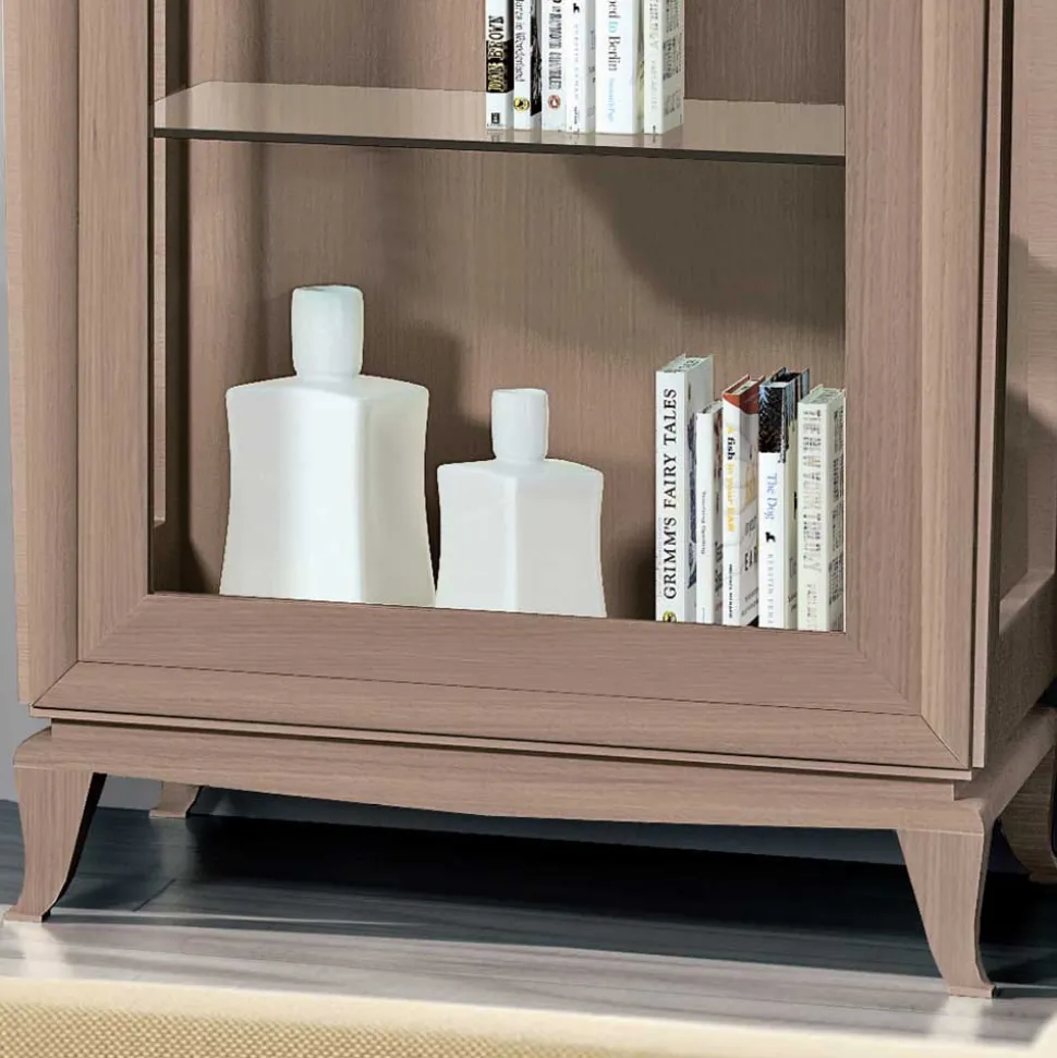 Die beiden Vitrinen, jeweils mit einer Höhe von 201 cm und einer Breite von 85 cm, bieten eine beeindruckende Mischung aus Stauraum und Ausstellungsfläche. Eine mit Rechts- und eine mit Linksanschlag ausgestattet, fügen sie sich harmonisch in Ihre Wohnraumgestaltung ein. Die verglasten Seitenflächen und die drei verstellbaren Glasböden im Inneren setzen Ihre Dekoration oder wertvollen Sammlerstücke perfekt in Szene. Durch die feine Verarbeitung und die edlen Materialien entsteht eine exklusive Optik, die Ihren Wohnbereich auf ein neues Niveau hebt. Auch hier sorgt das geschwungene Massivholzgestell für eine anmutige Leichtigkeit und einen stabilen Stand.
