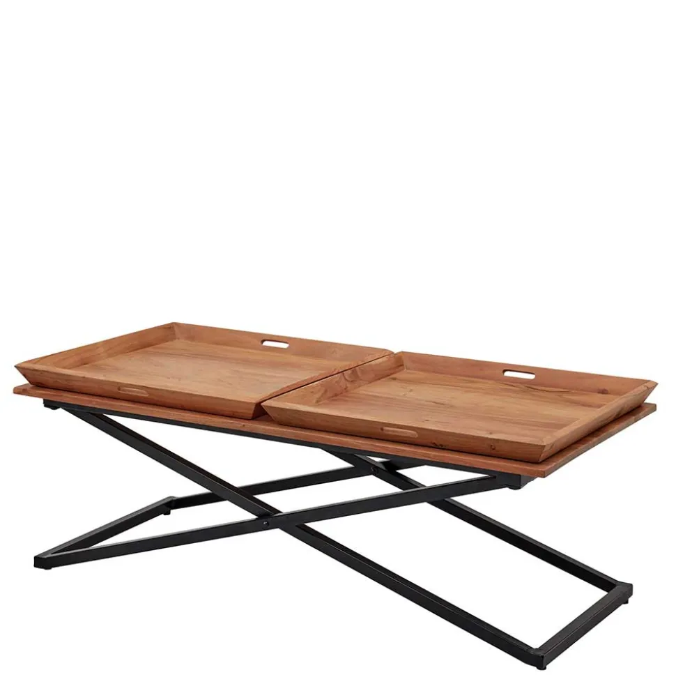 - Praktischer Couchtisch in Akaziefarben und Schwarz