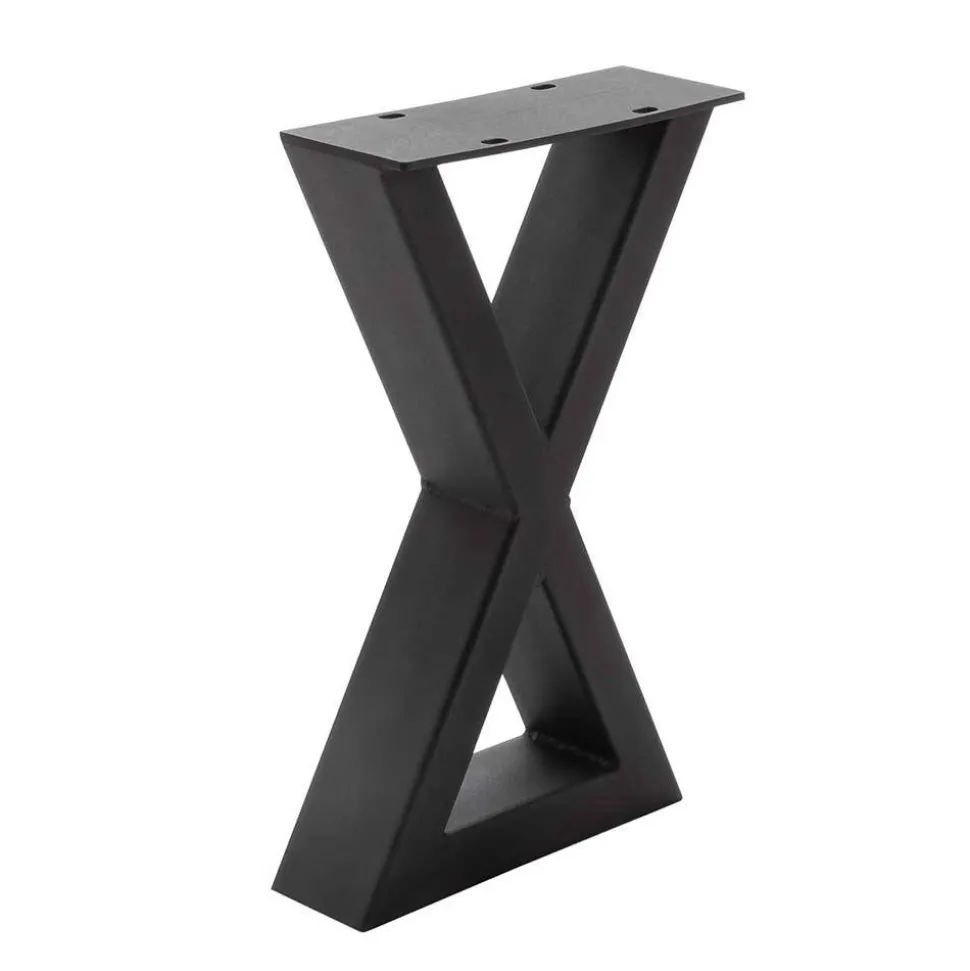 - Ein schwarz pulverbeschichtetes Metallgestell in markanter X-Form sorgt für sicheren Stand